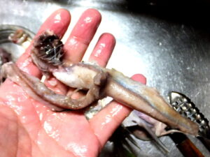 浮袋を割き、血っ気を除いてキレイに洗います。
