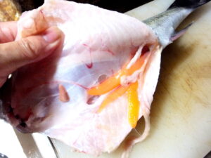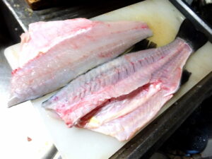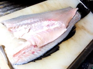 あとは、体側の骨をそぎ落とすか、骨抜きで抜いて準備完了。