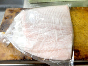 ほう、体表にはうっすらと脂が乗り、白い脂肪が肉片の中に喰い込んでます。
