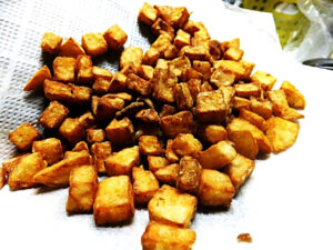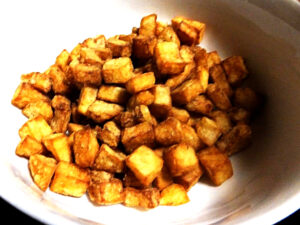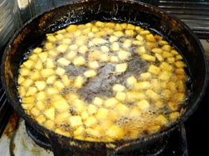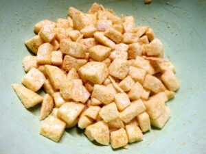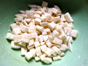 その間に、さいの目に切ったジャガイモに片栗粉をまとわせ・・・・