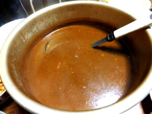 中身を別の鍋に移し、市販のカレーのルーを溶く。